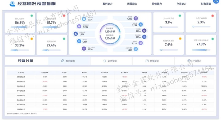 重要指標:年累計銷量完成率、全年銷量進度完成、月銷量、年累計銷量、年累計毛利完成率、全年毛利進度完成、月毛利、年累計毛利、回款周轉(zhuǎn)率、回款周轉(zhuǎn)率目標、計劃準確率、費用毛利率、