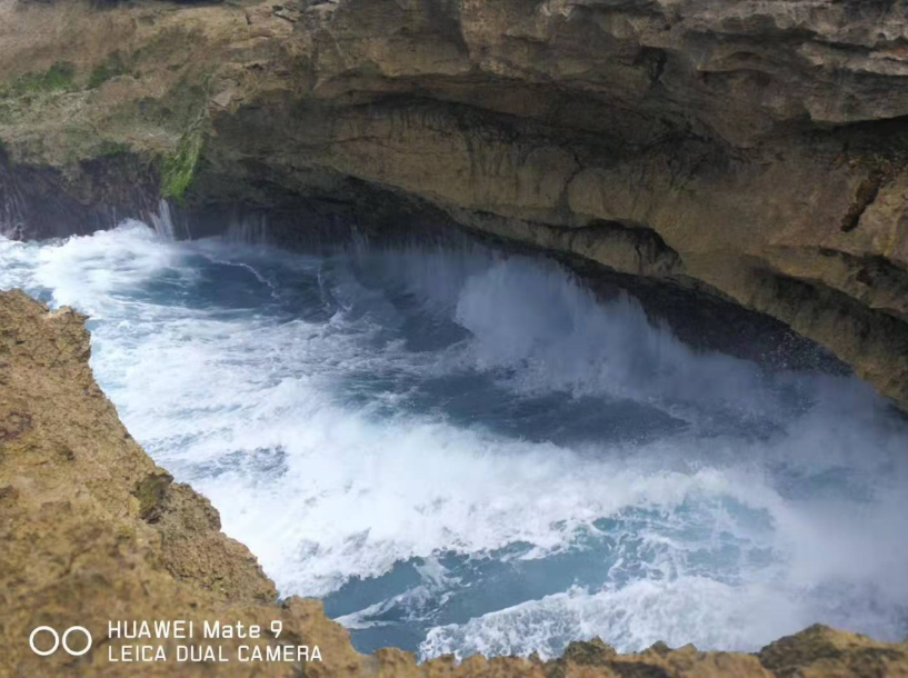 惡魔的眼淚是一個小的懸崖,但因為常年的海水沖刷,形成了一個開口圓形的形狀。懸崖底端也有被海水沖刷出的洞穴,因為壓強(qiáng)的擠壓,漲潮的時候海浪在這里被沖出幾十米高。我們運氣很好看到在陽光折射下水霧中的彩虹,而且還拍了不少美麗的照片。